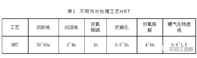 HRT即平均水力停留時間,指待處理污水在反應器內的平均停留時間,也就是污水與生物反應器內微生物作用的平均反應時間,為反應器有效容積與進水量的比值。對于生物處理,HRT要符合相應工藝要求,否則水力停留時間不足,生化反應不完全,處理程度較弱;水力停留時間過長則會導致系統污泥老化。